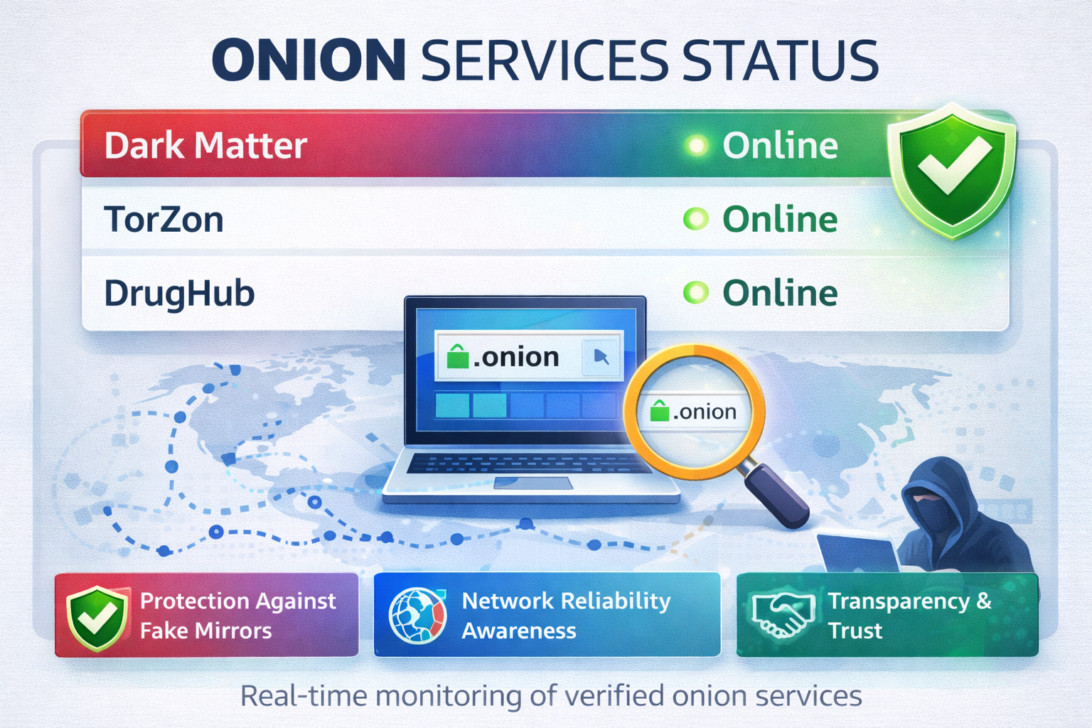 By openly displaying the current status of verified onion services, this directory aims to improve transparency and reduce uncertainty for users navigating the Tor ecosystem.
